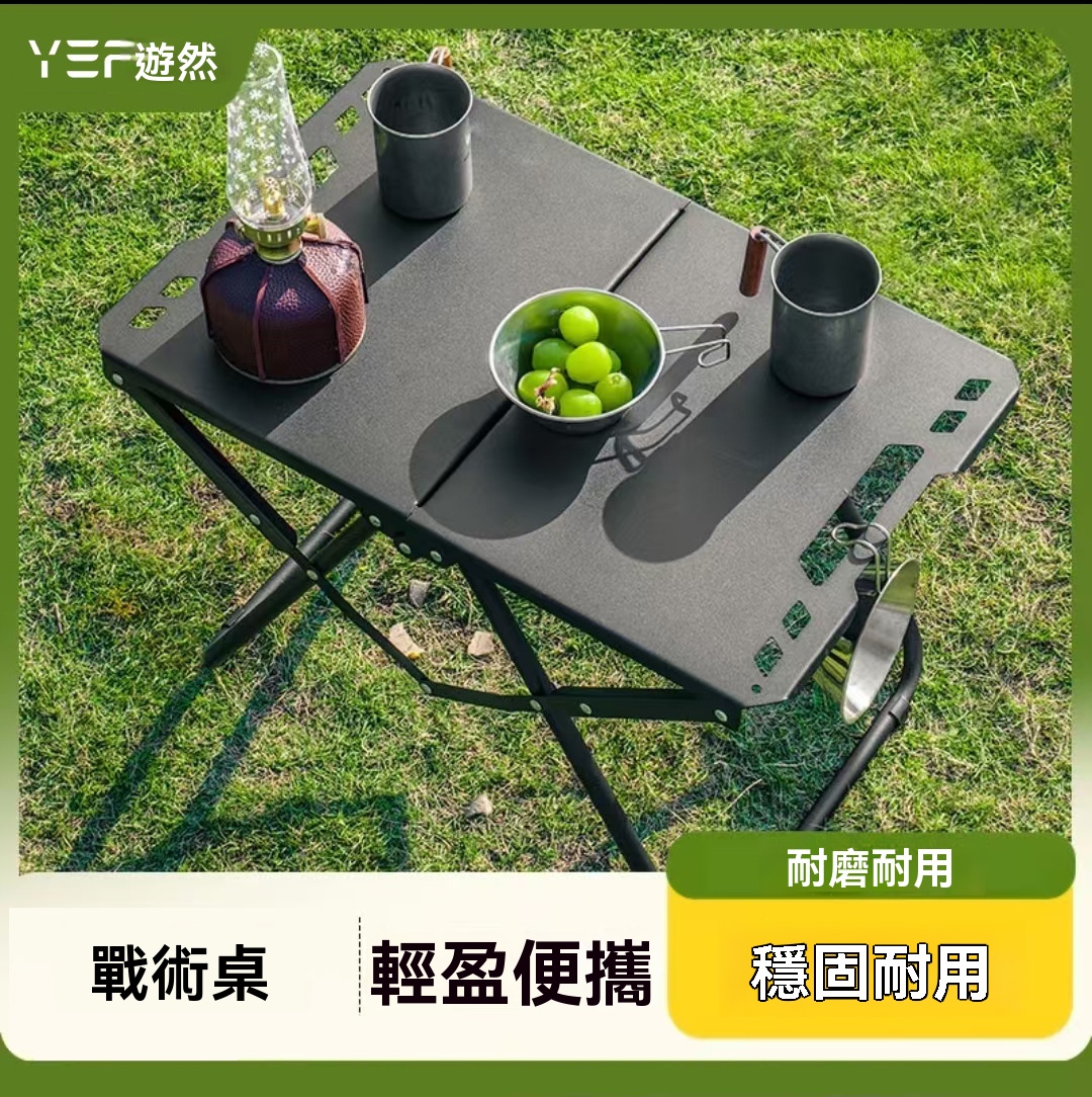 戶外露營戰術桌便攜速開輕量化對折折疊桌IGT多功能碳鋼燒烤桌子