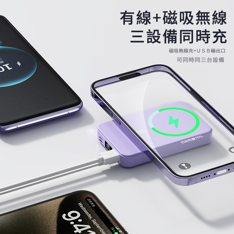 Magsafe W014磁吸無線充電寶,10000毫安,小巧輕便攜快充移動電源,自帶支架