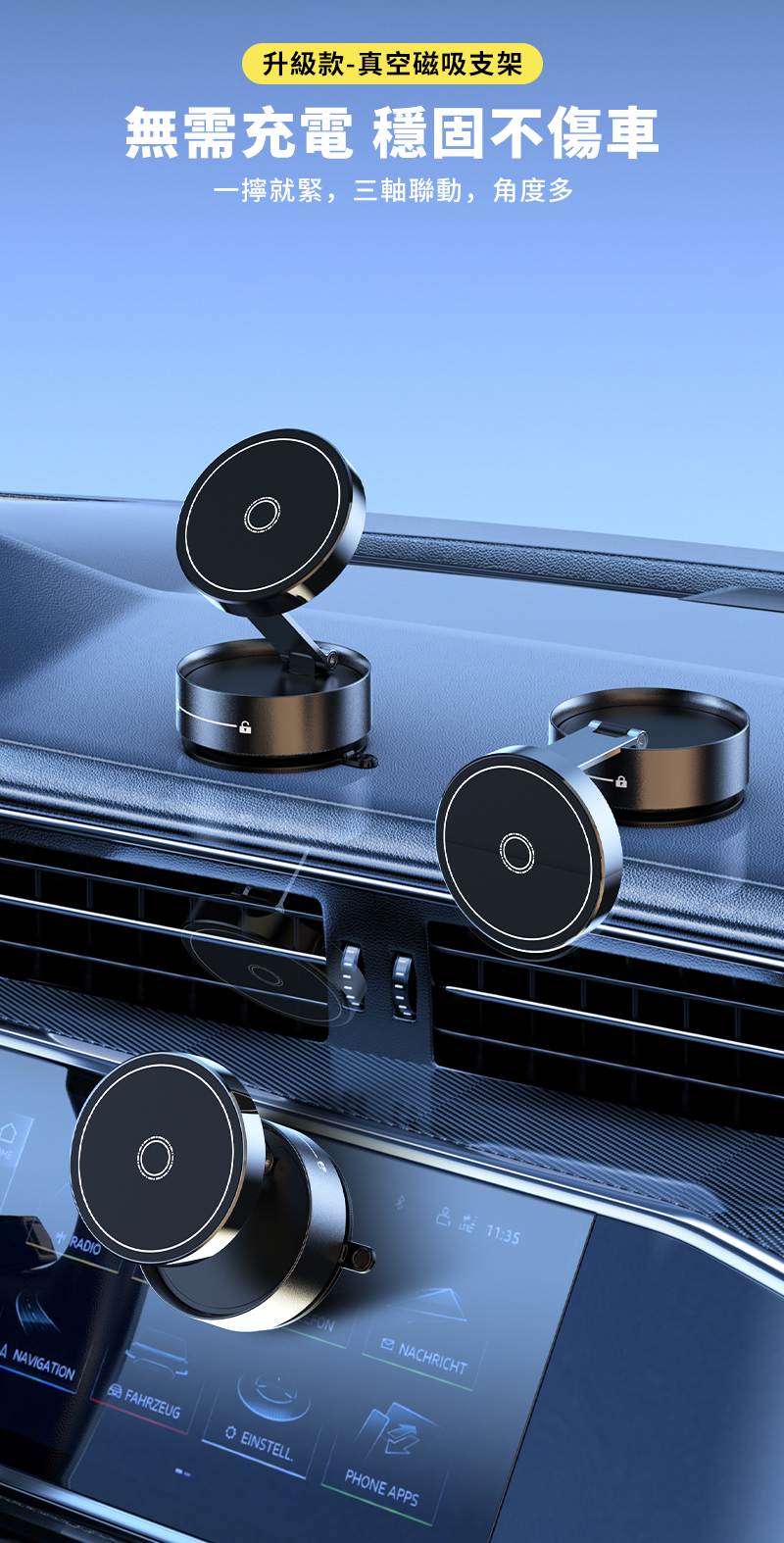 Q12真空吸附手機支架車載2025新款,真空鍵吸附,無需充電。