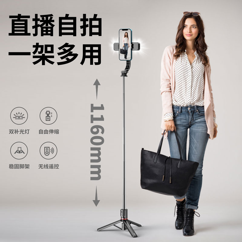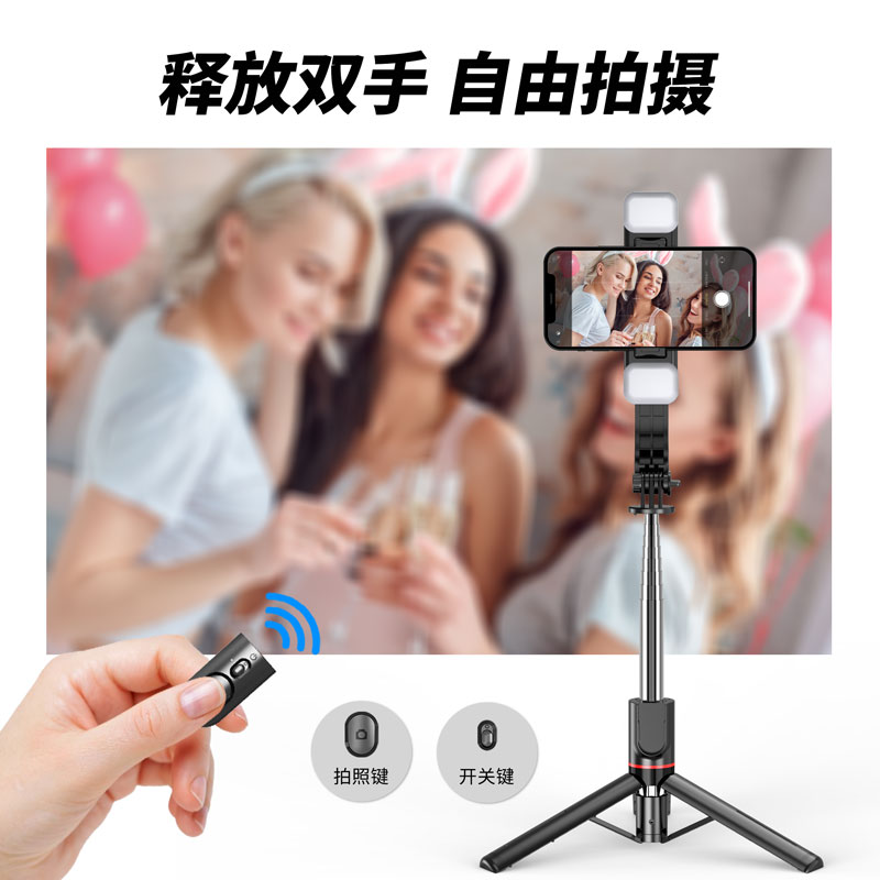 CYKE L13新品自拍桿通用支架遙控拍照三腳架補光燈自拍桿
