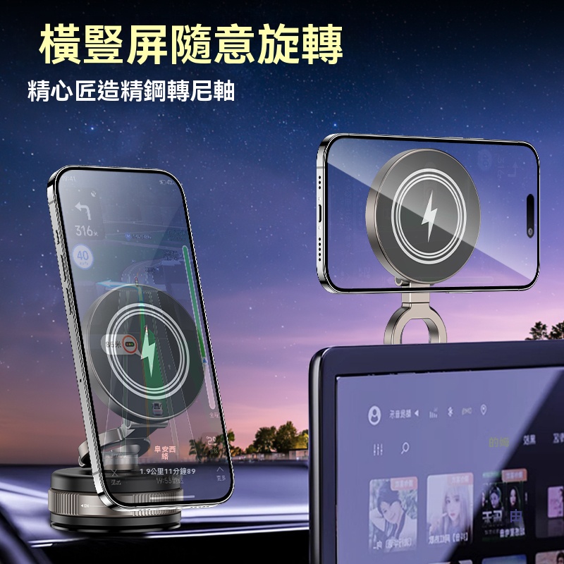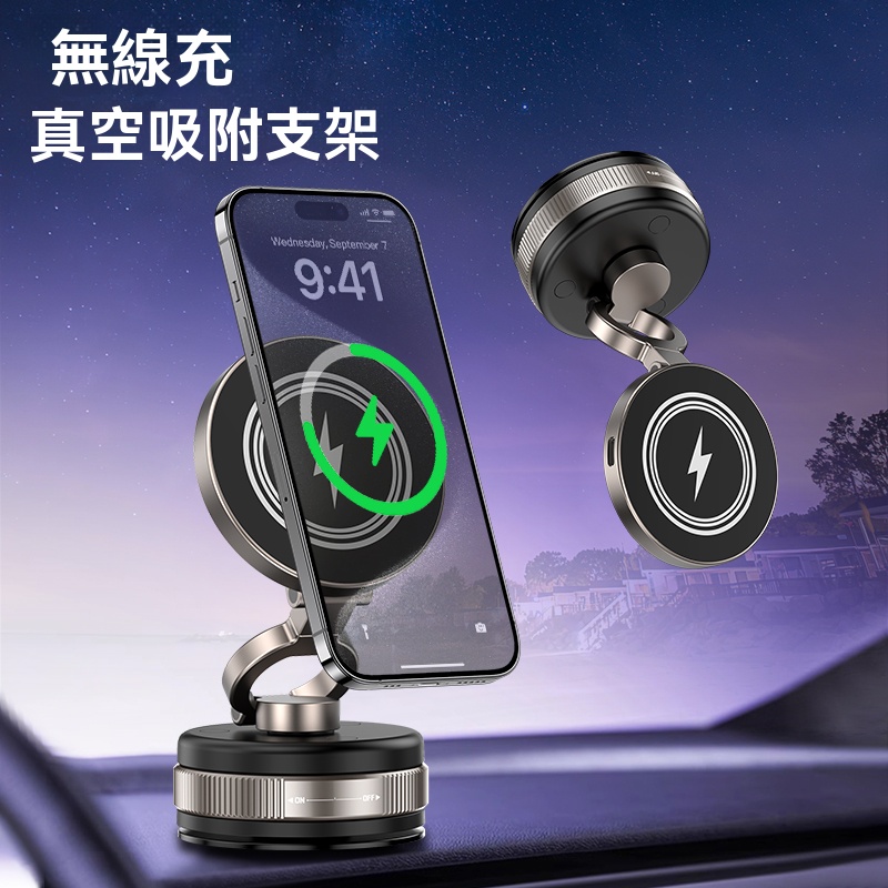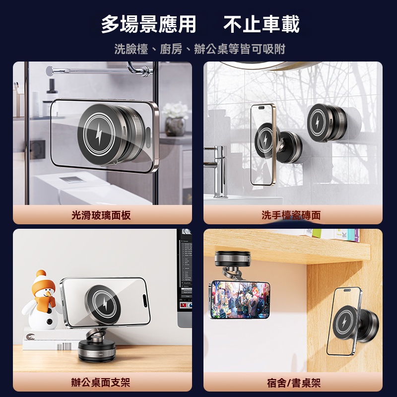2025 D1W三軸旋轉折疊真空吸盤手機支架,magsafe磁吸無線充電車載桌面便攜