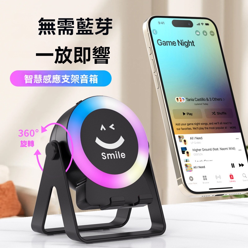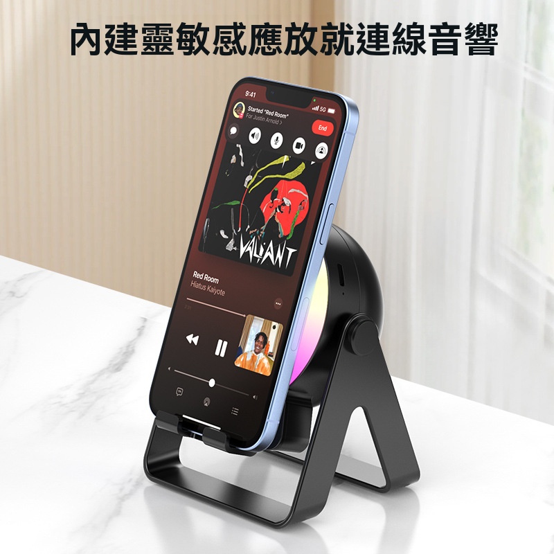 新款多功能手機支架,藍牙音箱 5W氛圍夜燈,戶外無線感應充手機支架