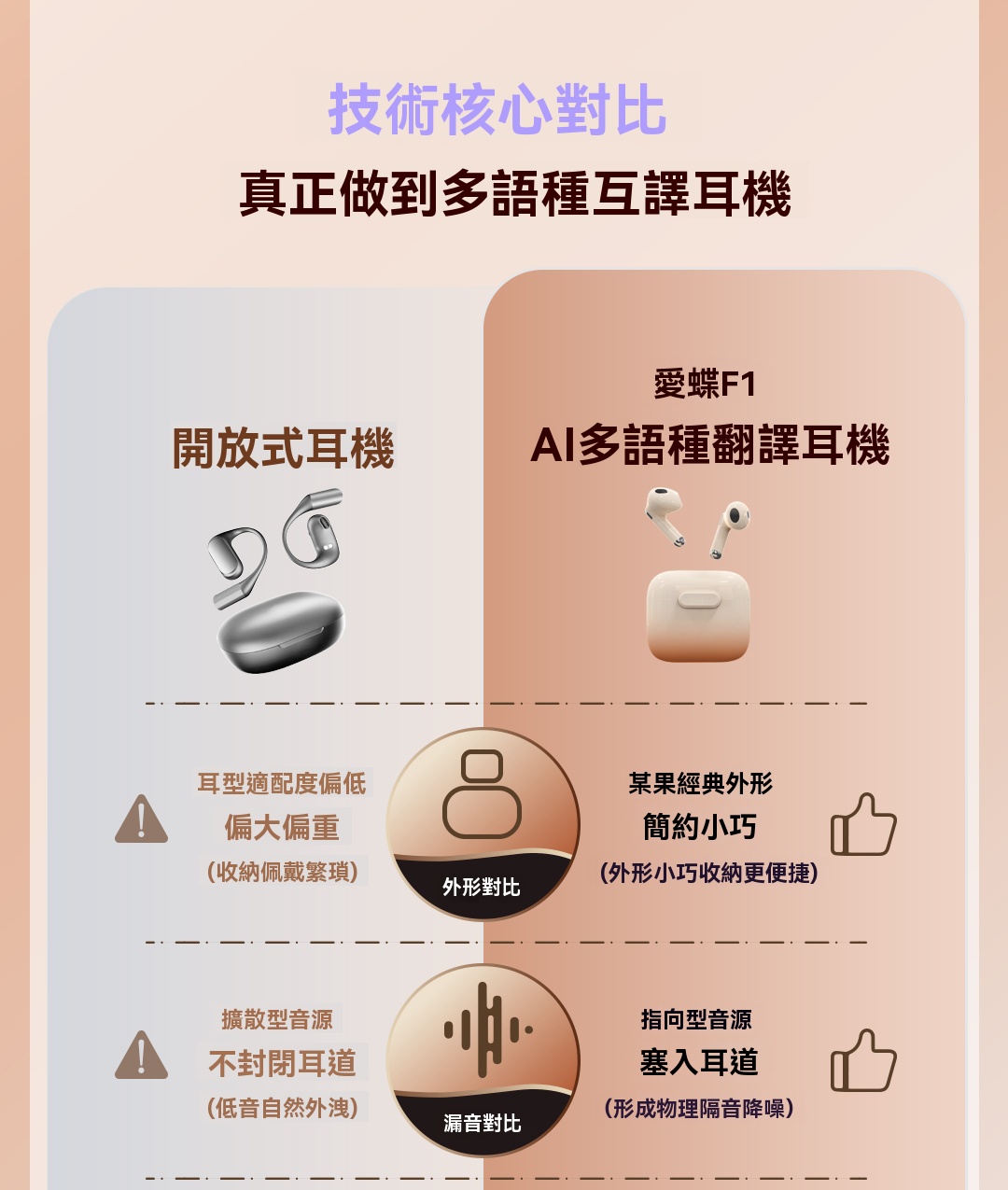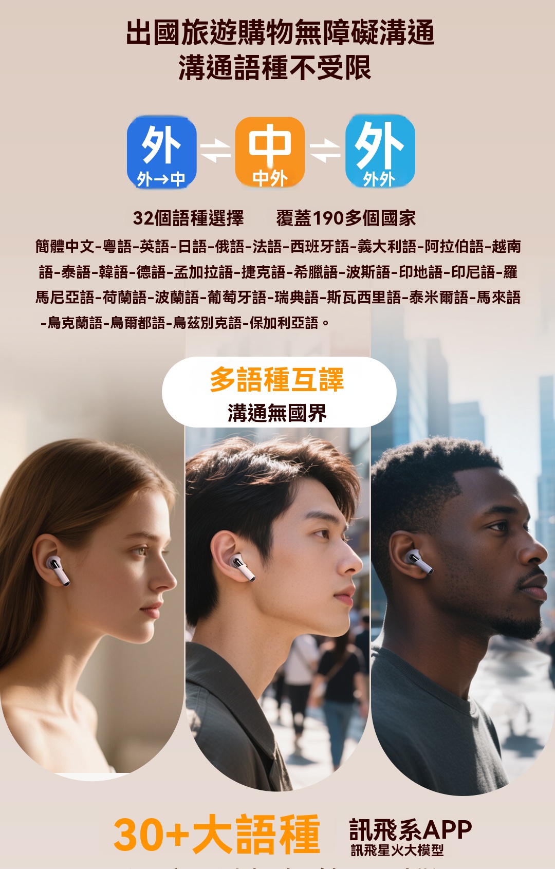 愛蝶 2025 AI智能翻譯藍牙耳機/主動降噪/半入耳式/適用蘋果安卓