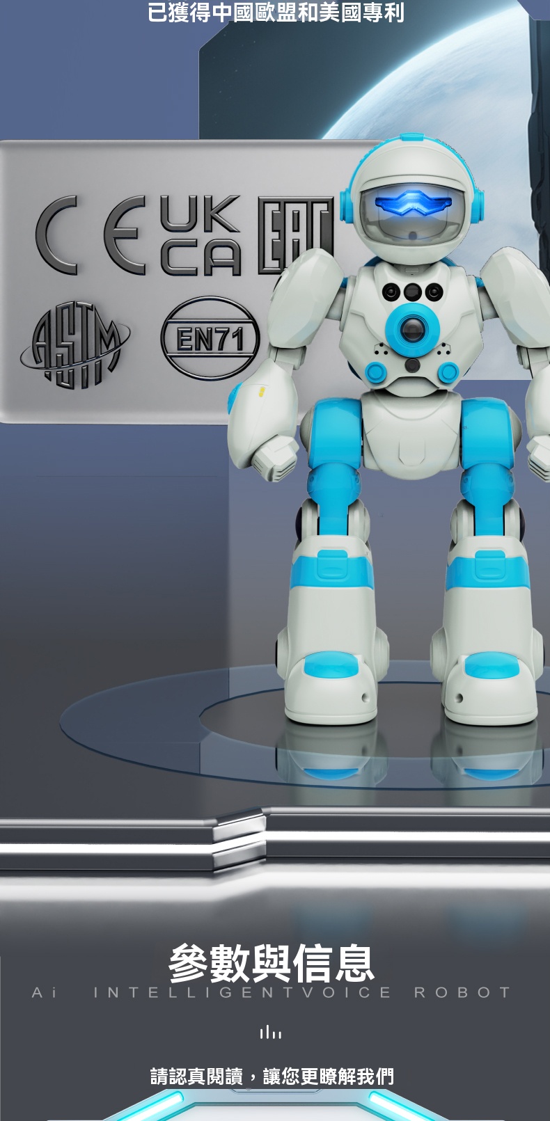 BG1545智能語音機器人是獨家最新研發,具有自主知識產權,已獲得歐盟和美國專利以及中國專利。BG1545智能語音對話機器人以極高的功能性創新和絕對的高性價比,將讓嚴重缺乏新產品、好產品、好理念的遙控機器人品類煥發新的機會。值此2025年AI機器人大爆發的新一年,BG1545機器人將重新燃爆整個機器人品類,為機器人品類和市場打開一個更大的市場定間,創造新的市場熱點。